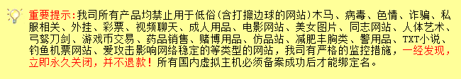 [11] 为了保证服务器上所有虚拟主机用户站点均能正常稳定的运行,严禁上传及运行以下程序:1)聊天室; 2)江湖游戏; 3)大型软件下载; 4)在线播放,木马病毒等极为占用资源的程序。